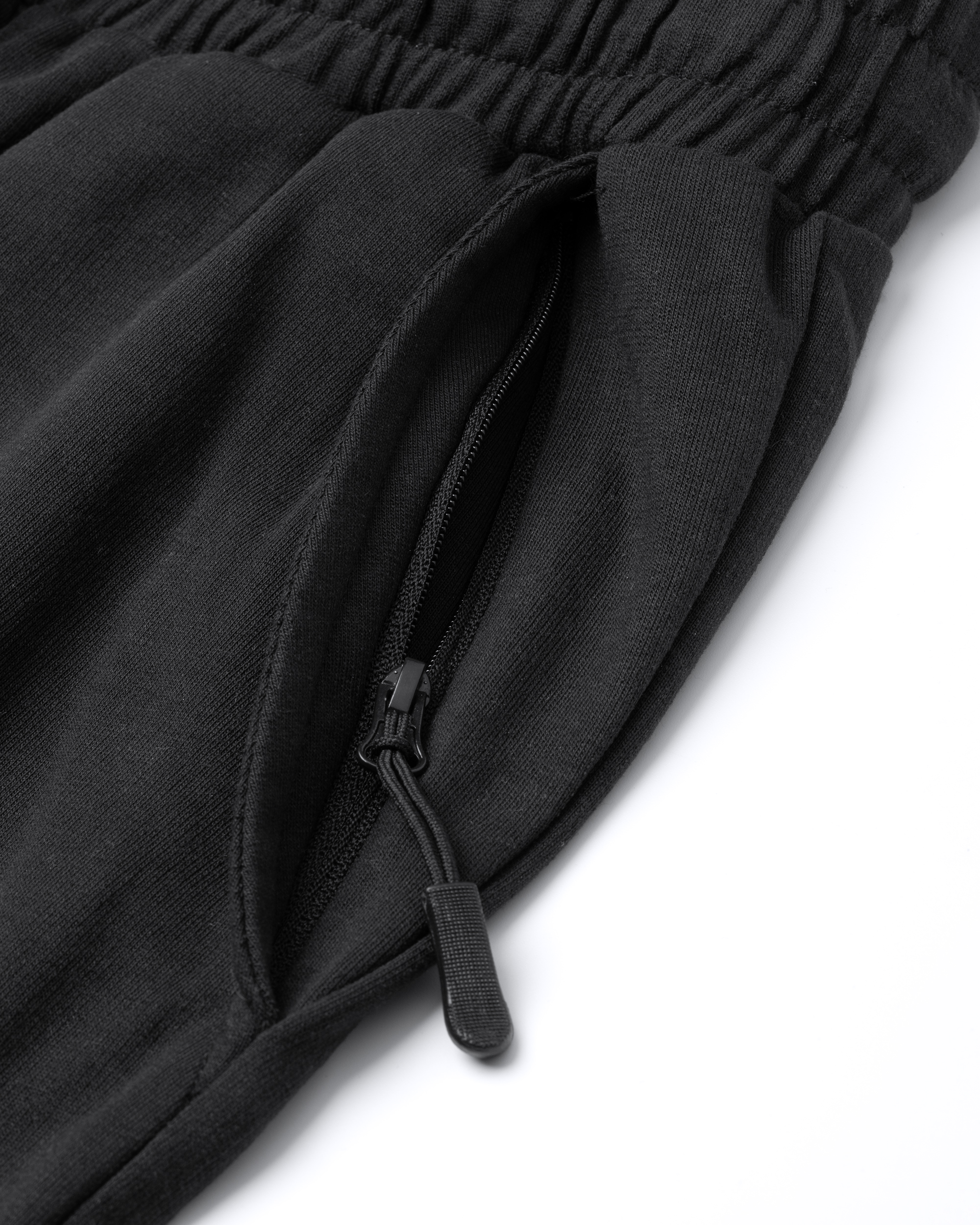 Pantalón largo de chándal, con cinturilla ancha ajustable mediante cordón. Bolsillos laterales con cremalleras. Bajos de puño ajustados.