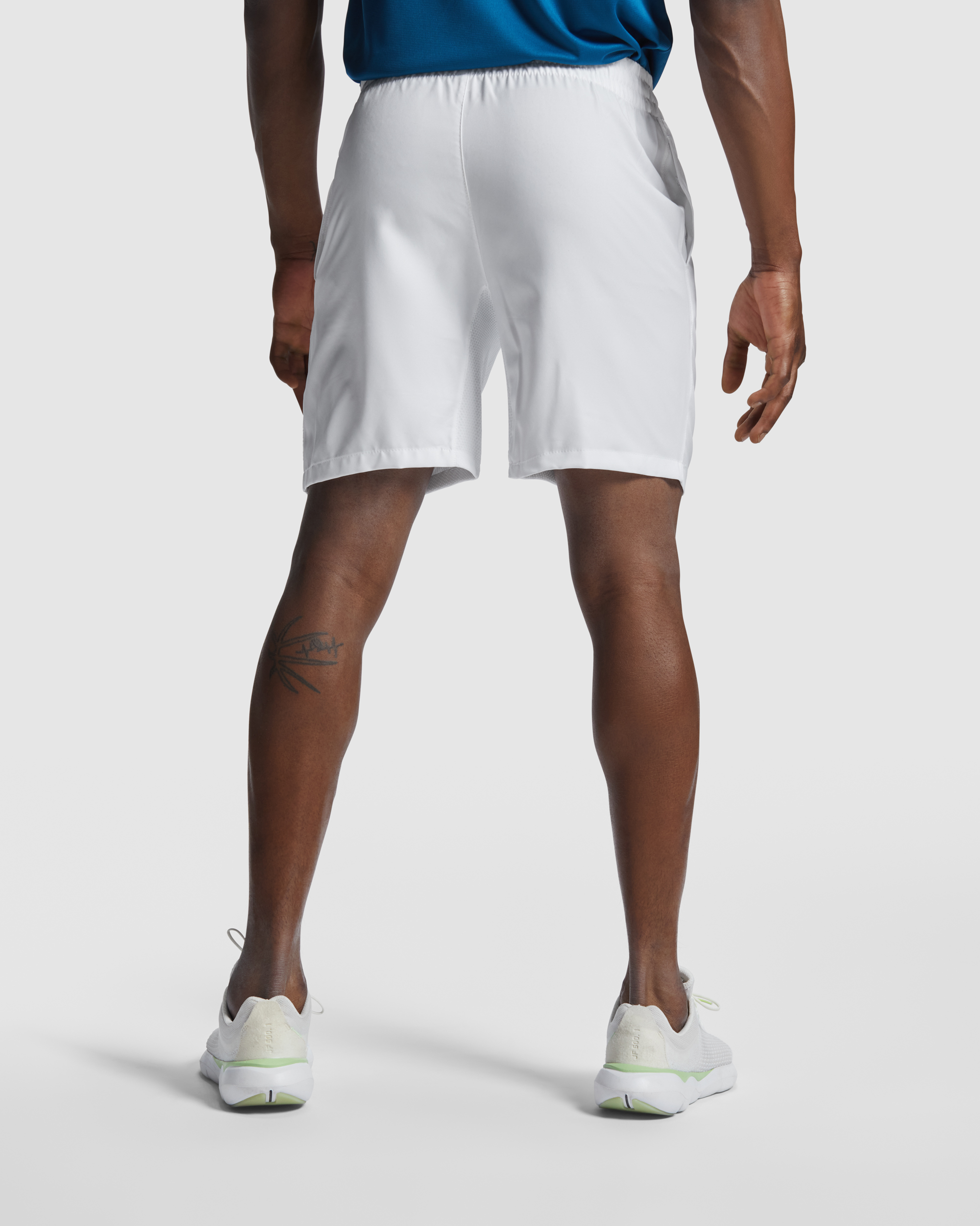 Pantalón deportivo corto con bolsillos laterales. Cinturilla elástica con cordón ajustable. Tejido ligero y transpirable con interior frontal en malla de microfibra.