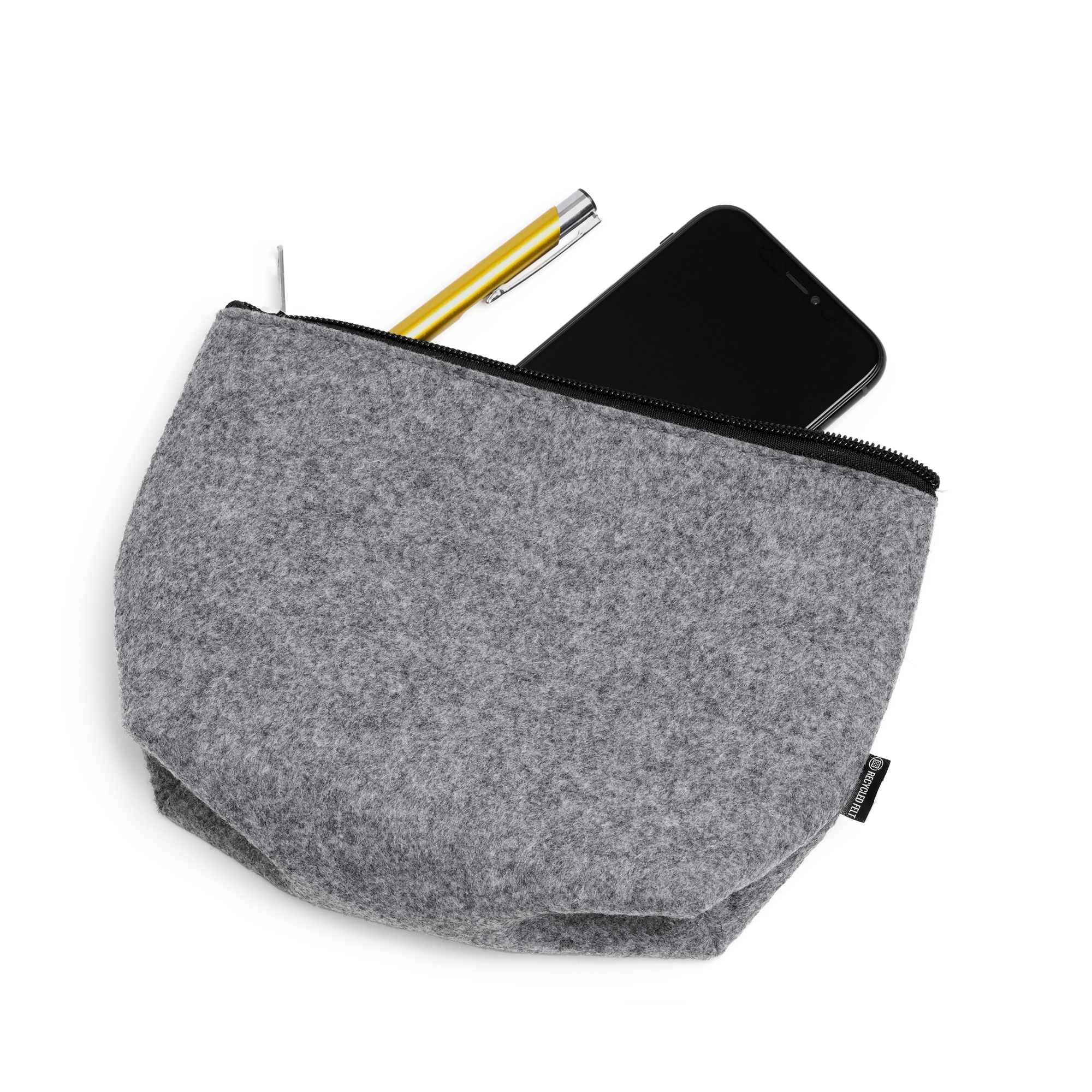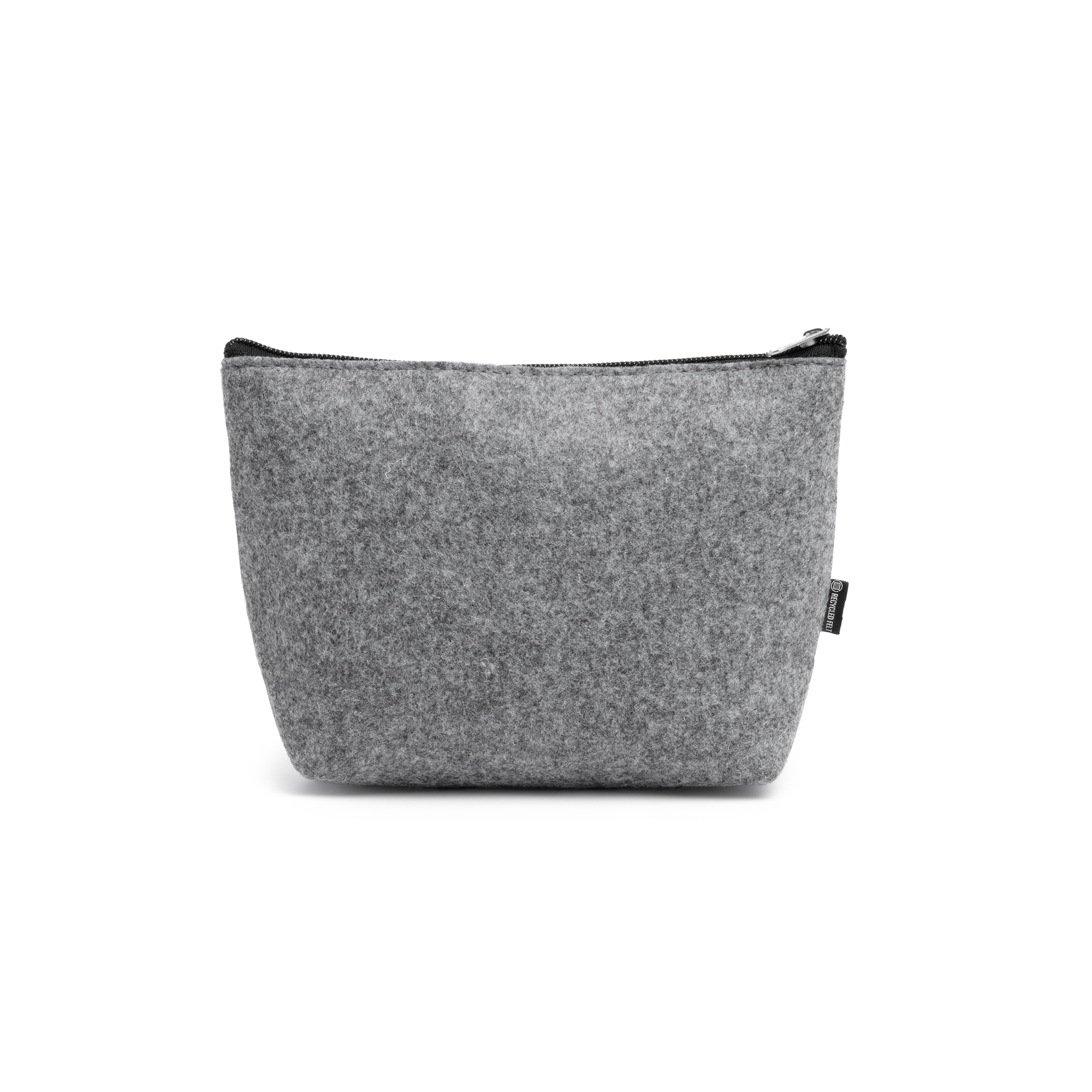 Neceser realizado en fieltro reciclado con diseño vigoré, perfecto para organizar tus productos de uso personal de manera sostenible. Con cierre de cremallera y tirador a juego, con un amplio espacio para almacenar tus productos. Una opción sostenible y práctica para organizar tus enseres.
