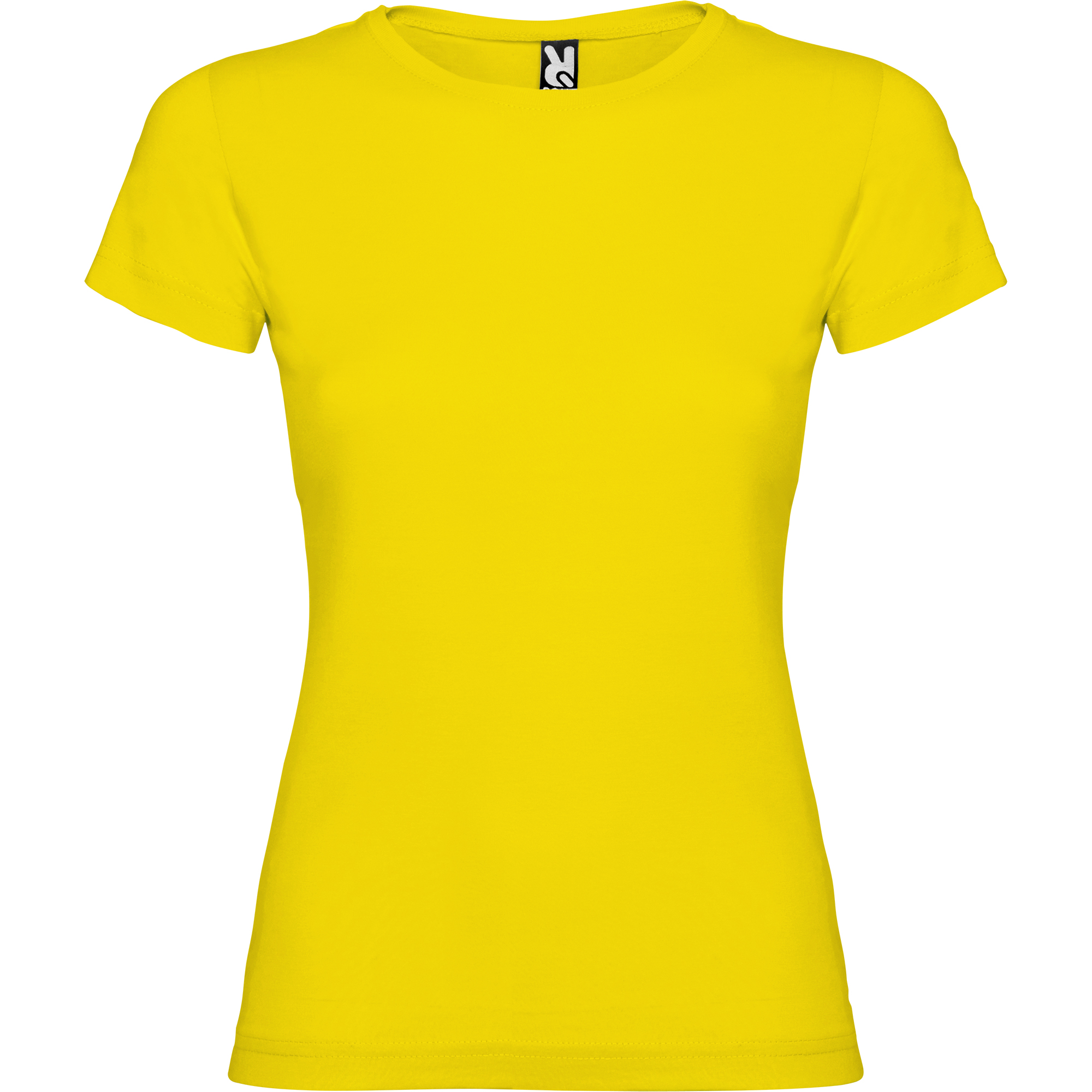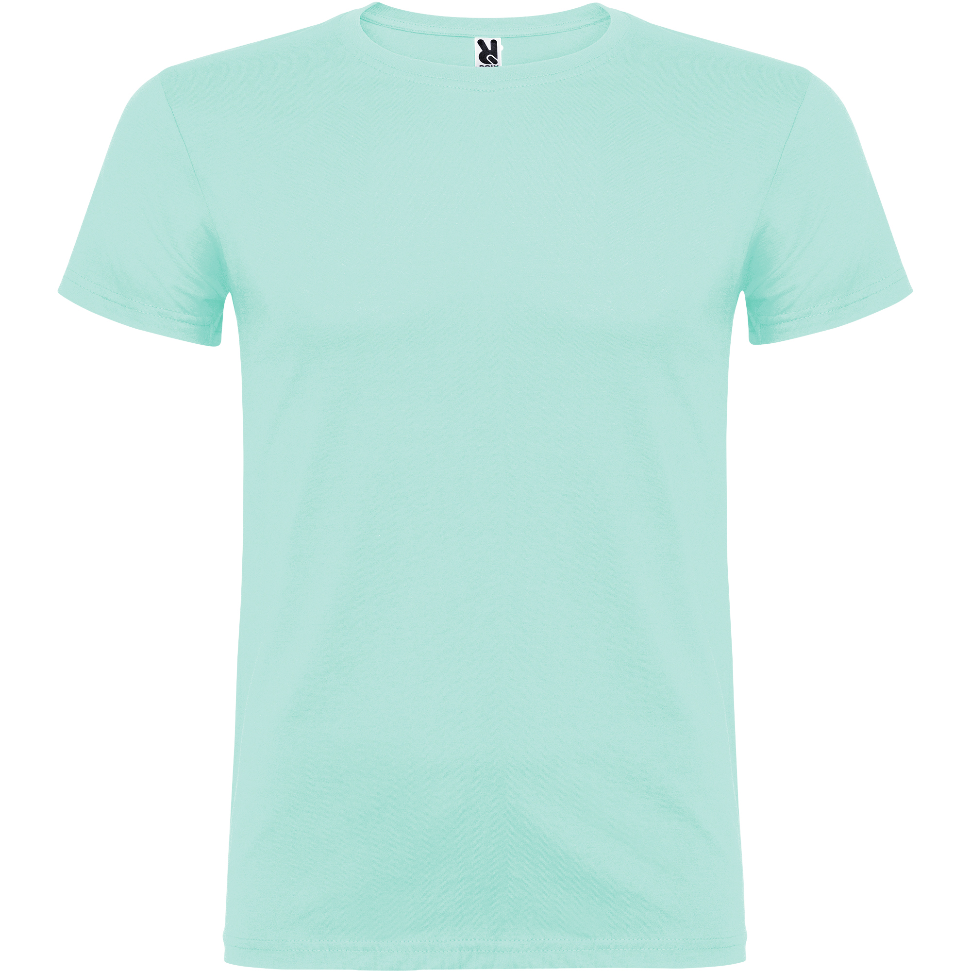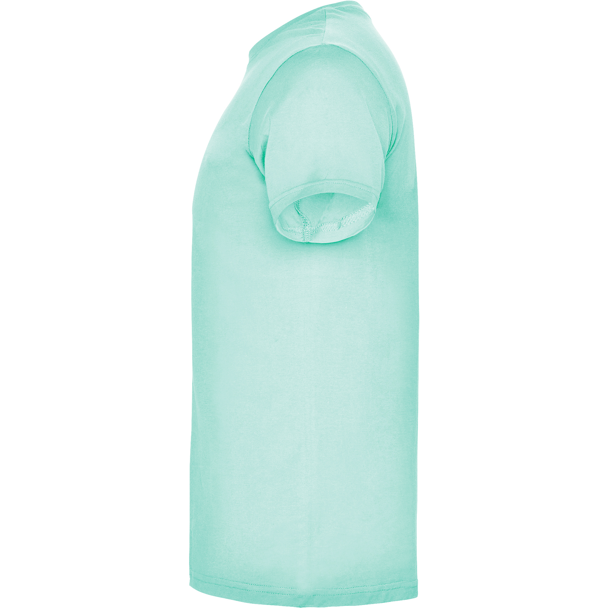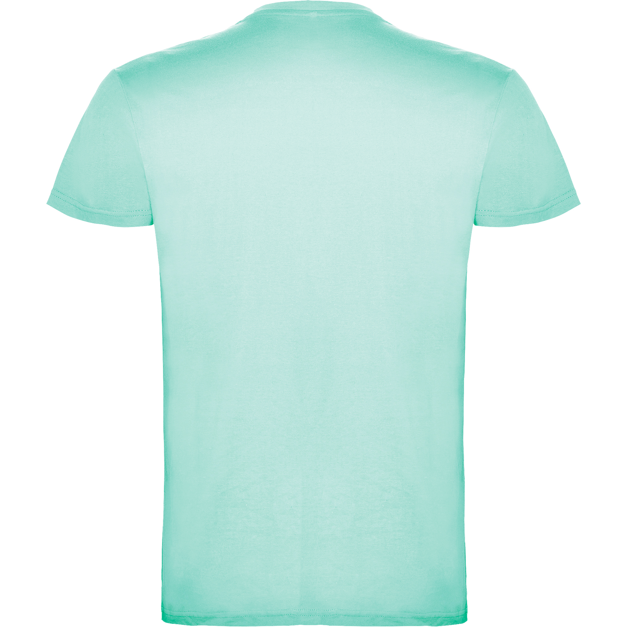Camiseta de manga corta de cuello redondo doble con elastano, confeccionada en tejido tubular en tallas de adulto, y con costuras laterales en tallas de niño, con cubrecosturas reforzado en cuello.