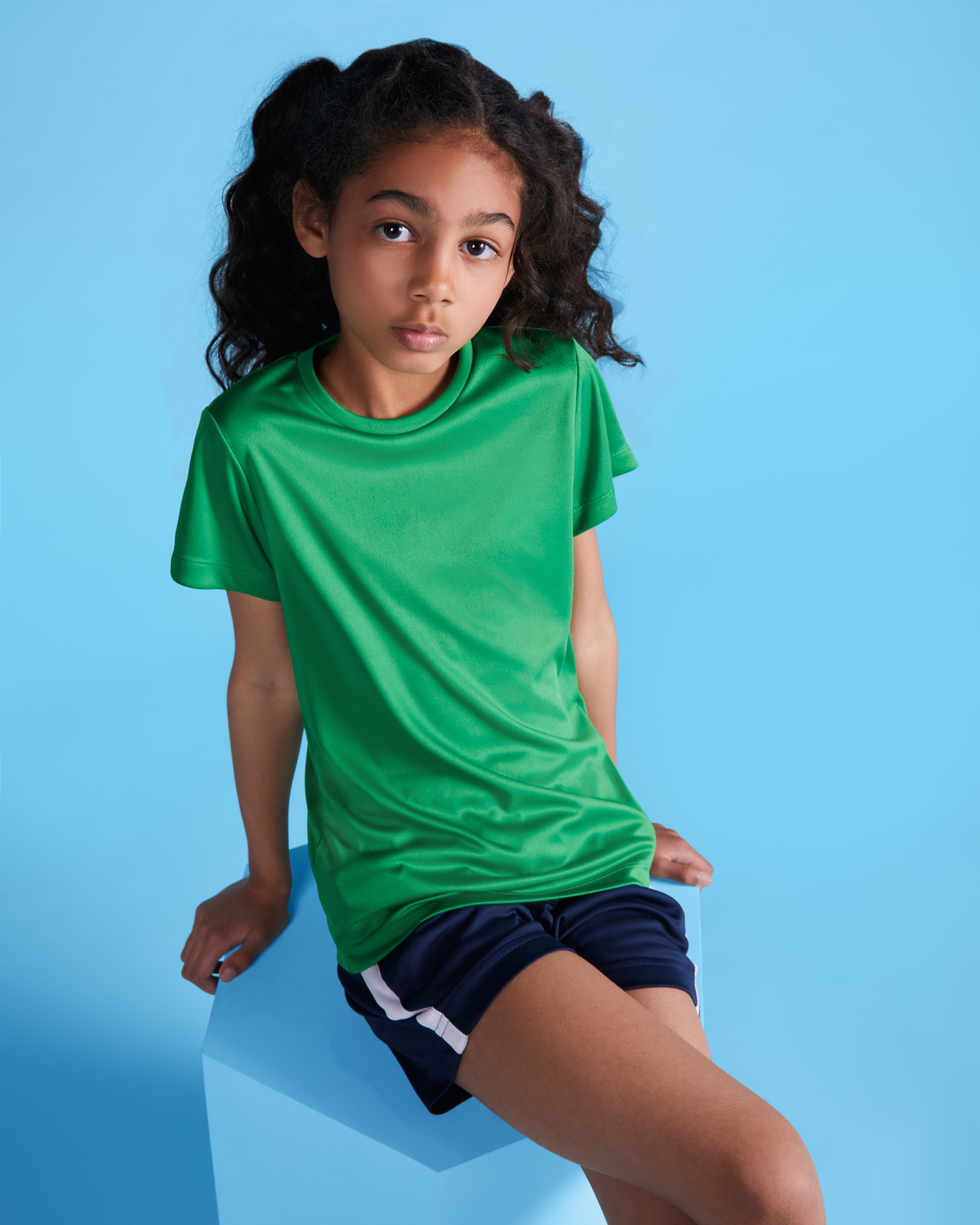 Camiseta técnica de manga corta traspirable. Cuello redondo con cubrecosturas a tono.