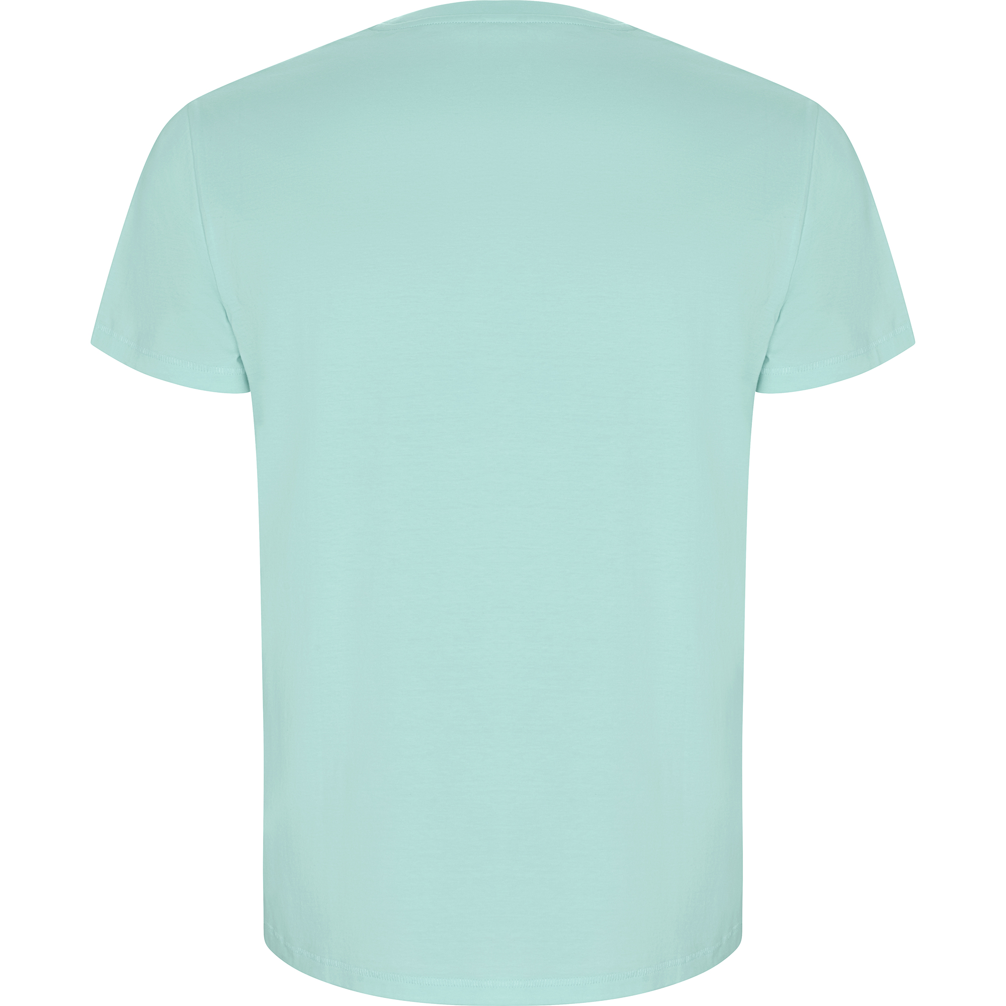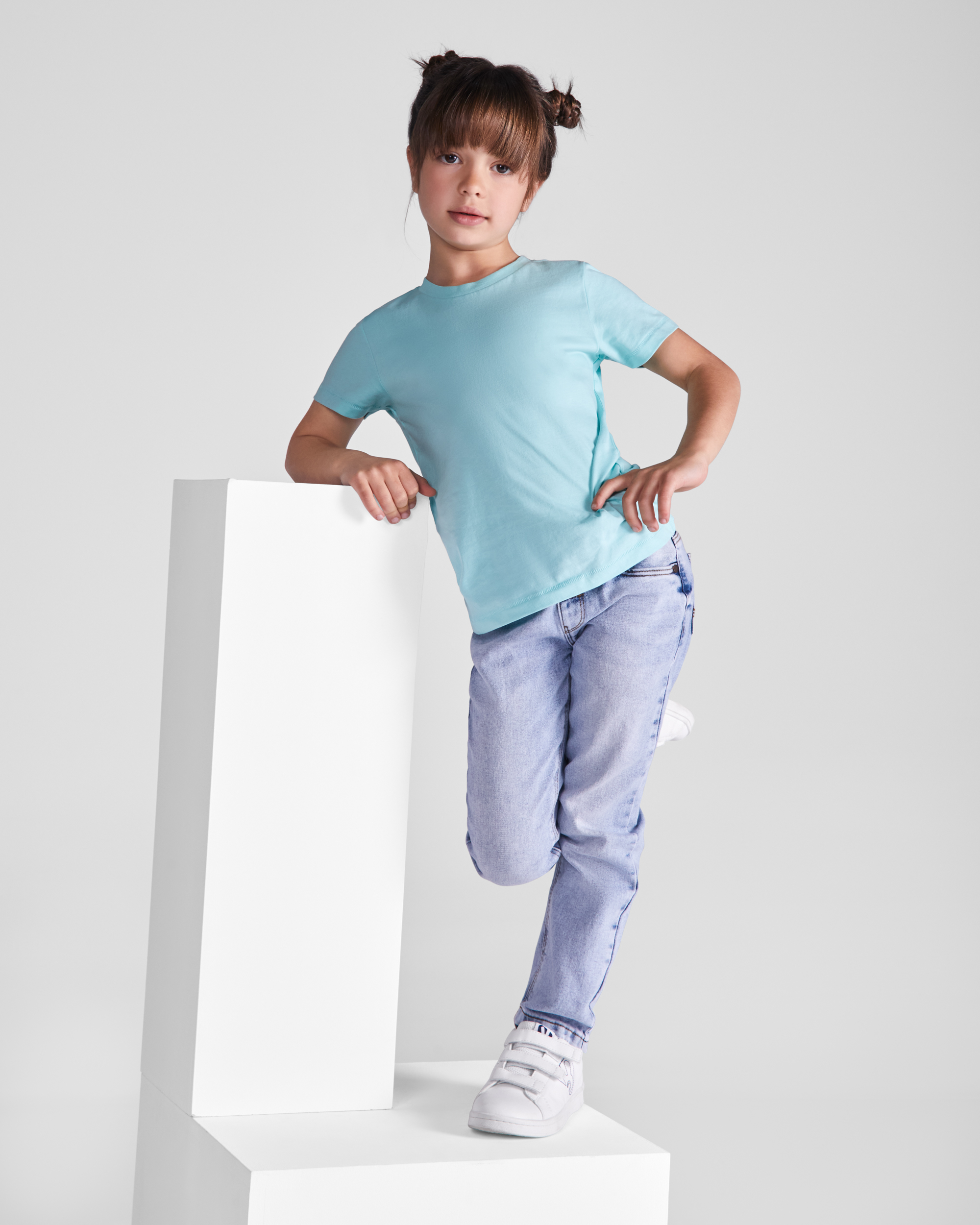 Camiseta tubular de manga corta en Algodón Orgánico. Cuello redondo con Rib 1×1. Costuras decorativas en bajo y mangas.