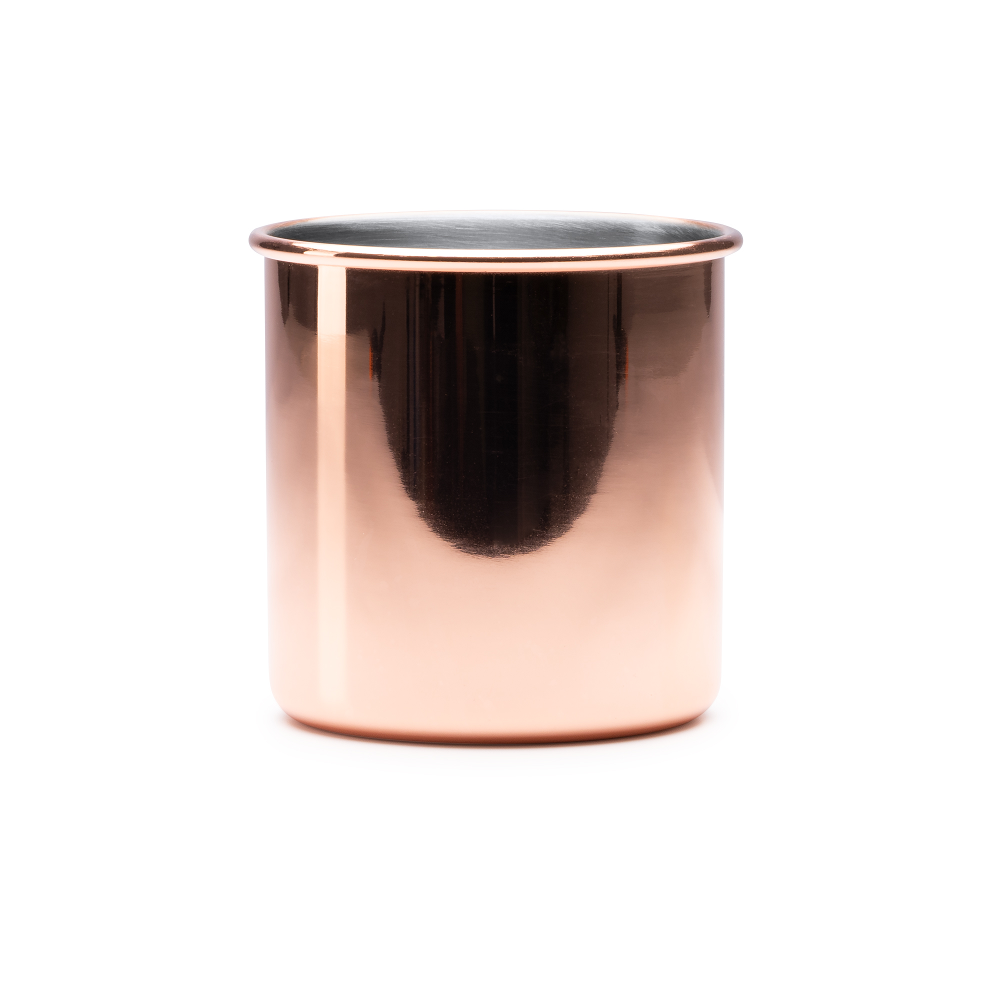 La taza de acero inoxidable con recubrimiento de cobre exterior y asa cuadrada en color dorado. Con una capacidad de 480 ml. Es una elección elegante y sofisticada para disfrutar de tus bebidas favoritas a la temperatura ideal gracias a su recubrimiento y composición. Además de ser una opción duradera y resistente.