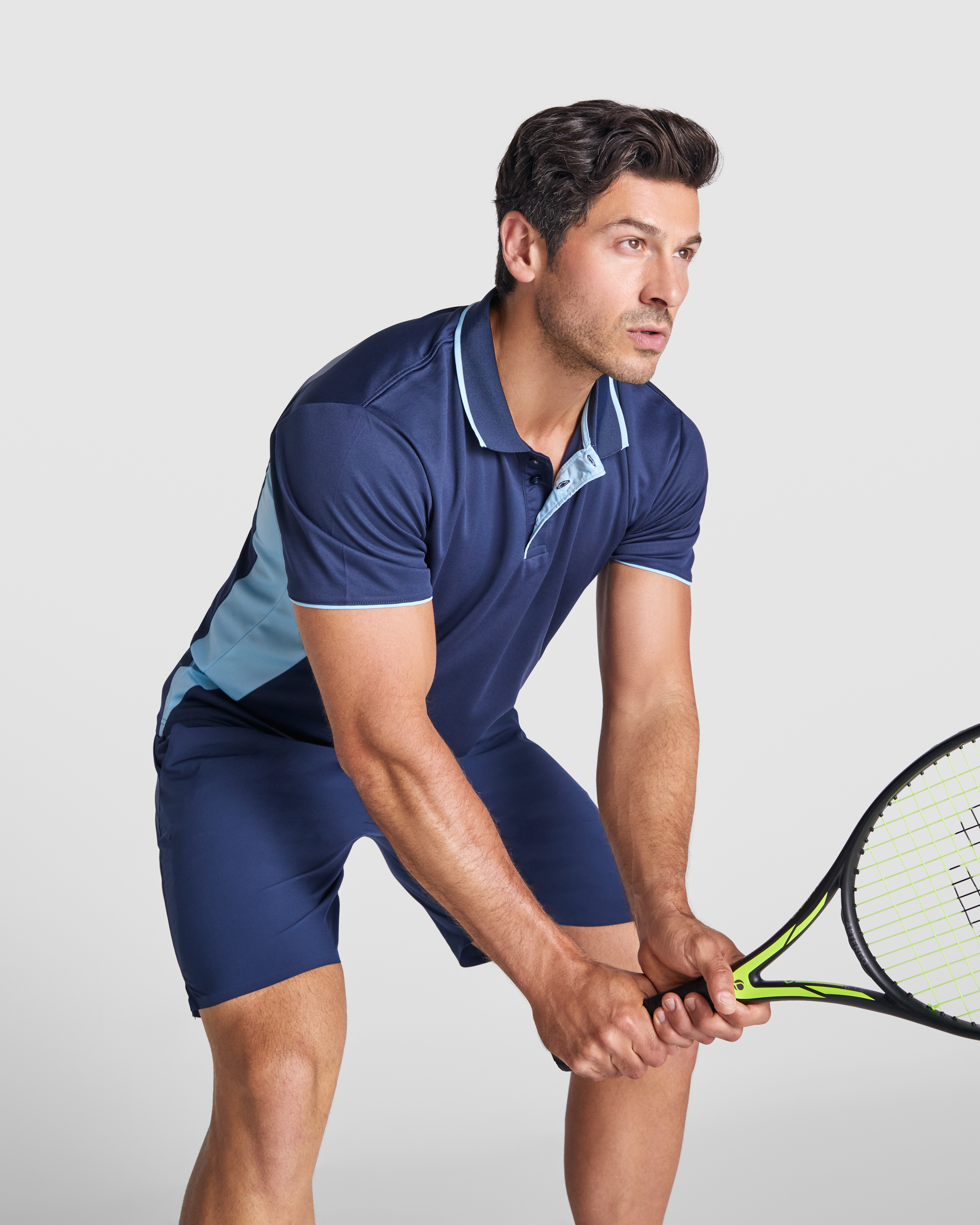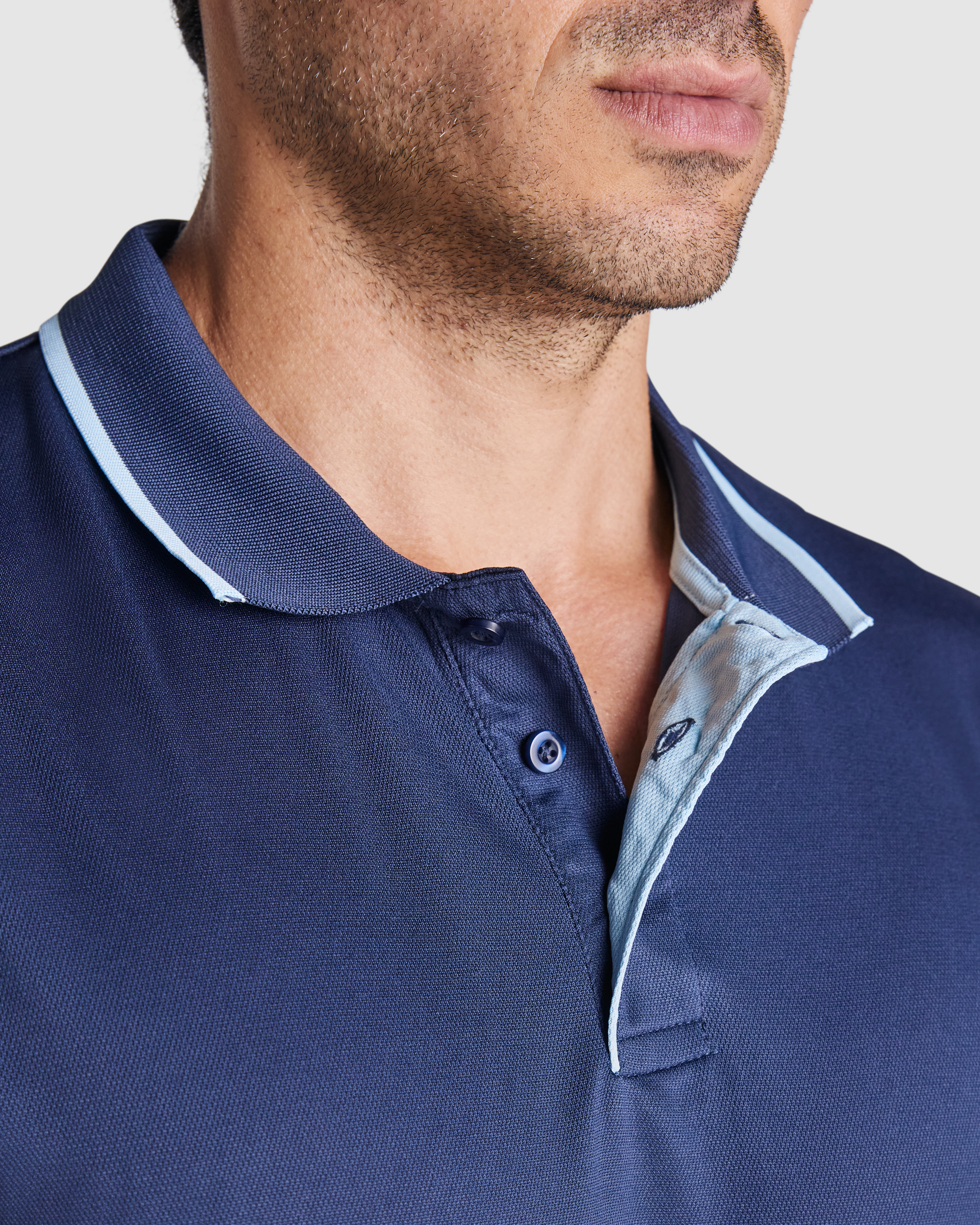 Polo técnico en manga corta, especial para deporte. Combinado a dos colores. Cuello con abotonadura, cubrecosturas y tapeta en contraste de color. Tejido transpirable fácil lavado y secado.