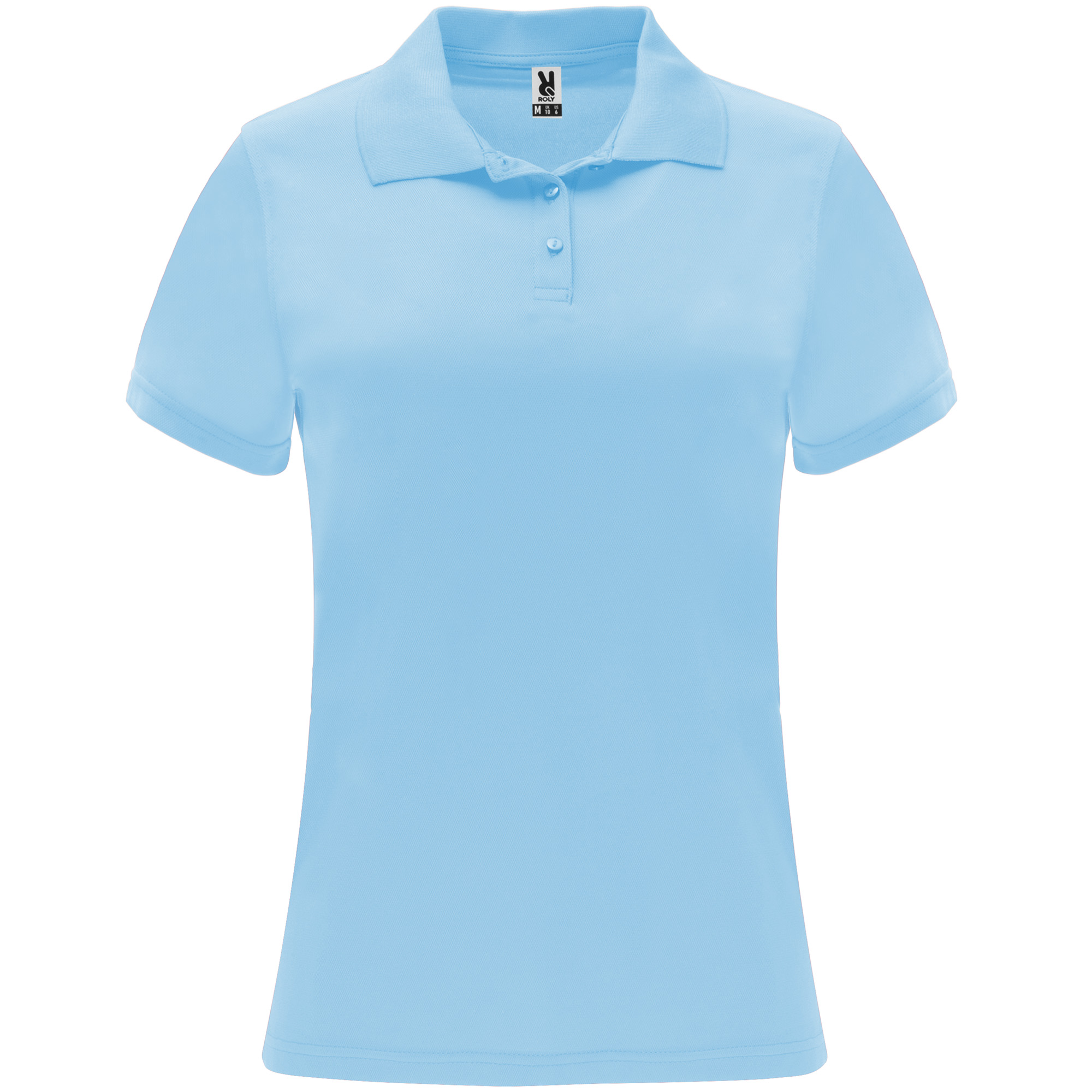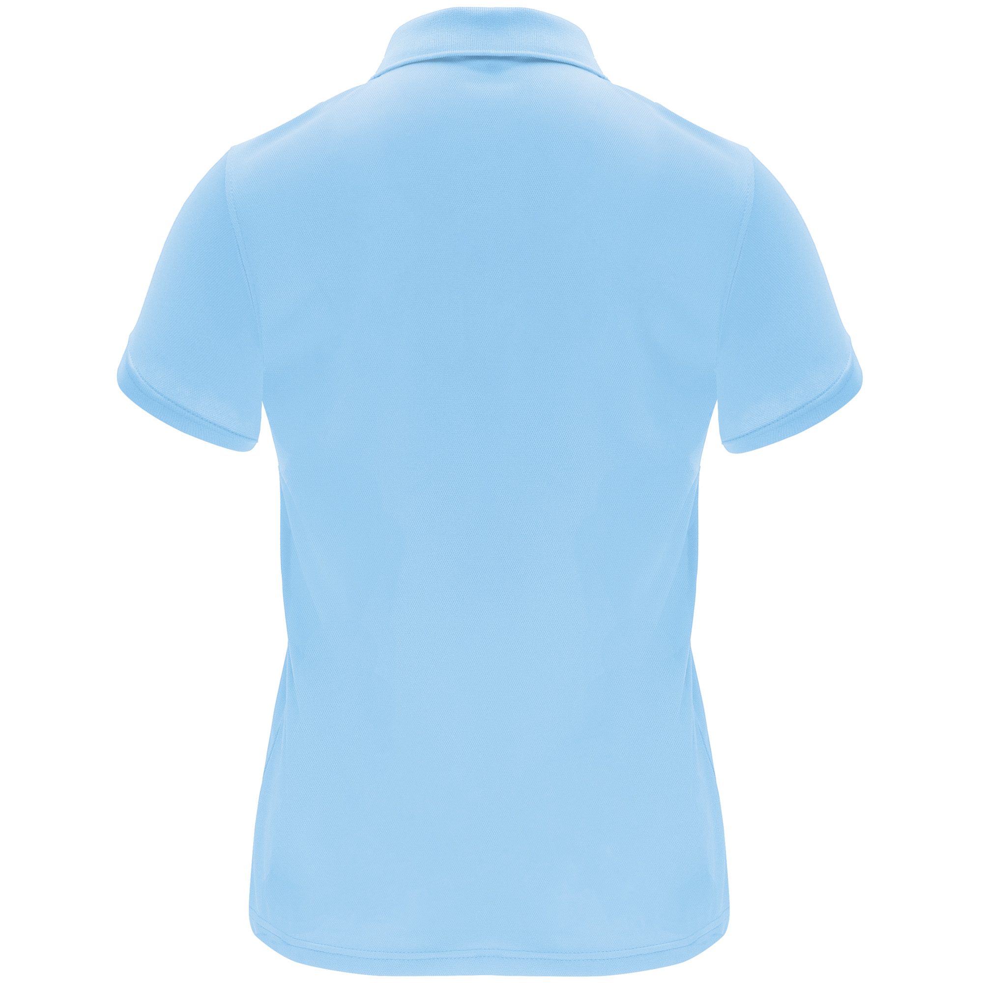 Polo técnico de manga corta para mujer. Cuello tricotosa con tapeta de tres botones. Corte entallado.