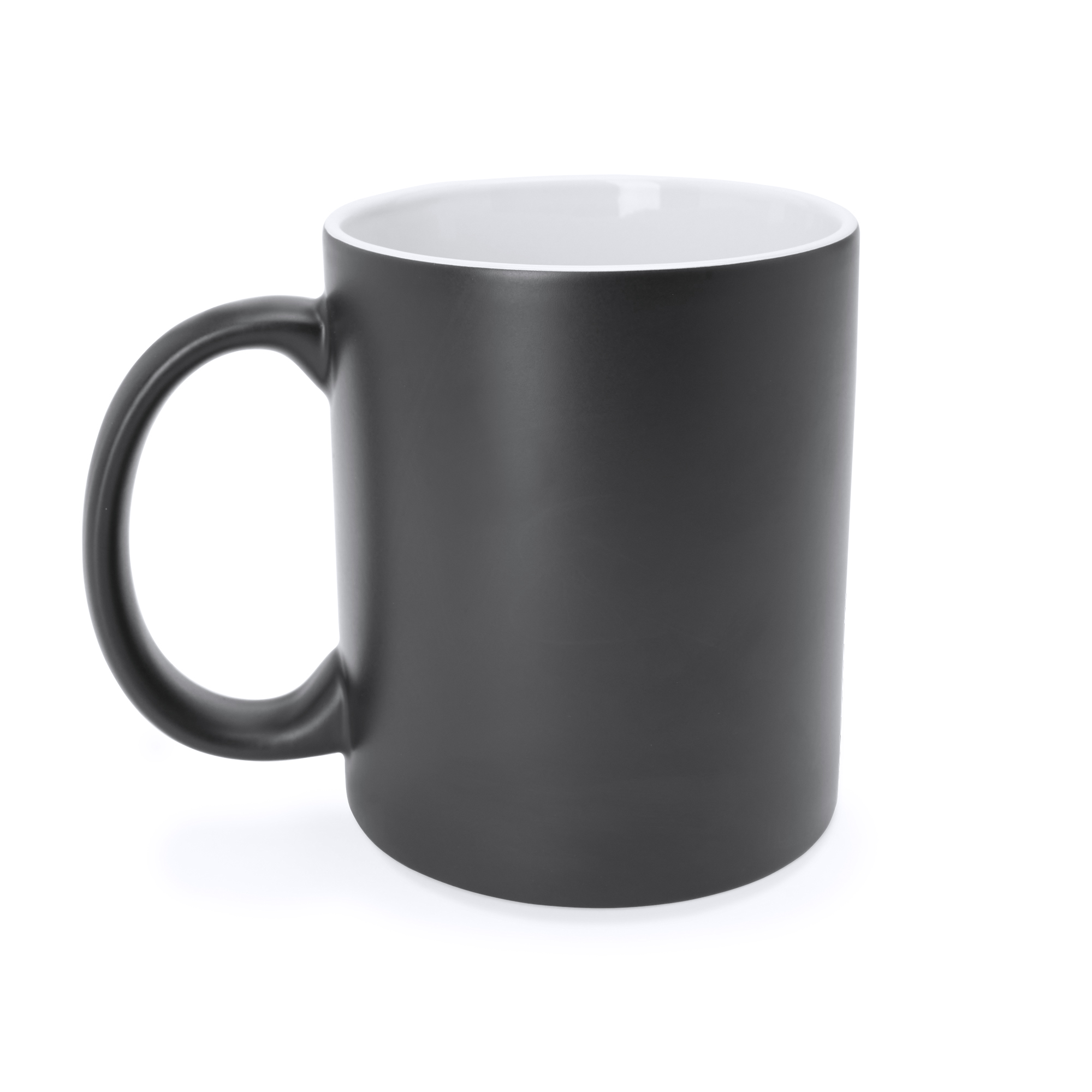 Taza mágica de cerámica de 350 ml. en acabado mate. Vierte líquido caliente en ella y descubre el diseño escondido.