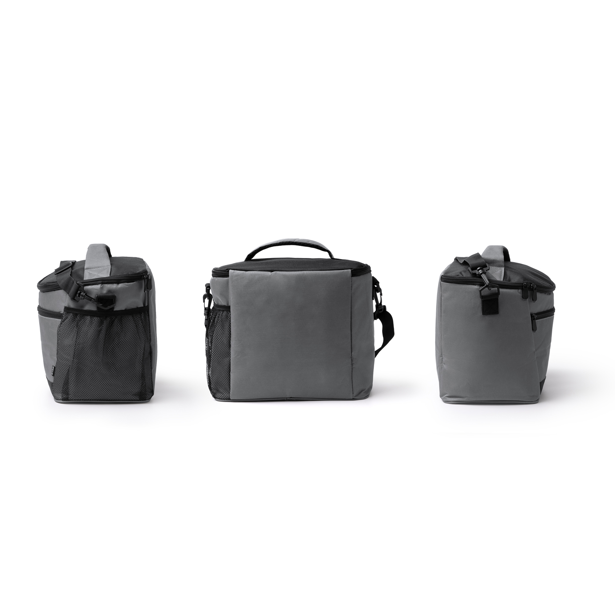Nevera de gran formato realizada en 600D RPET, lo que la hace una opción sostenible y funciional. Cuenta con un bolsillo frontal preparado para el almacenaje de utensilios o snaks. Además de incluir un bolsillo lateral de rejilla para el transporte de botellas y bebidas. Interior Isotérmico para mantener los alimentos en una temperatura óptima y cinta de transporte ajustable para mayor comodidad.