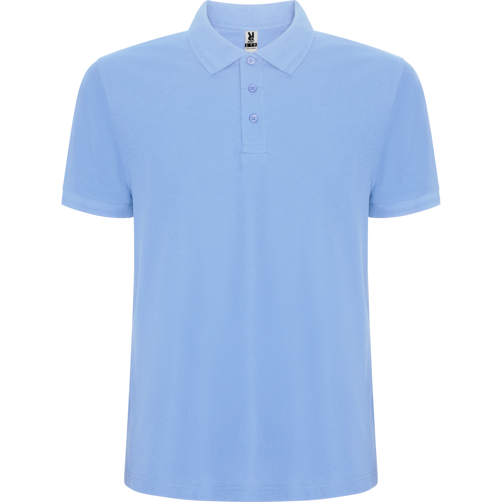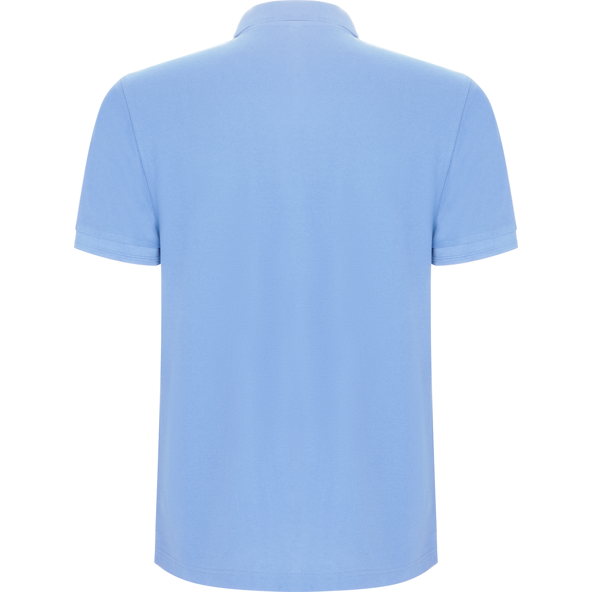 Polo de manga corta. Cuello y ribete de mangas en canalé 1×1 con detalle en relieve. Tapeta con 3 botones. Cubrecosturas reforzado en cuello. Aperturas laterales y bolsillo opcional.