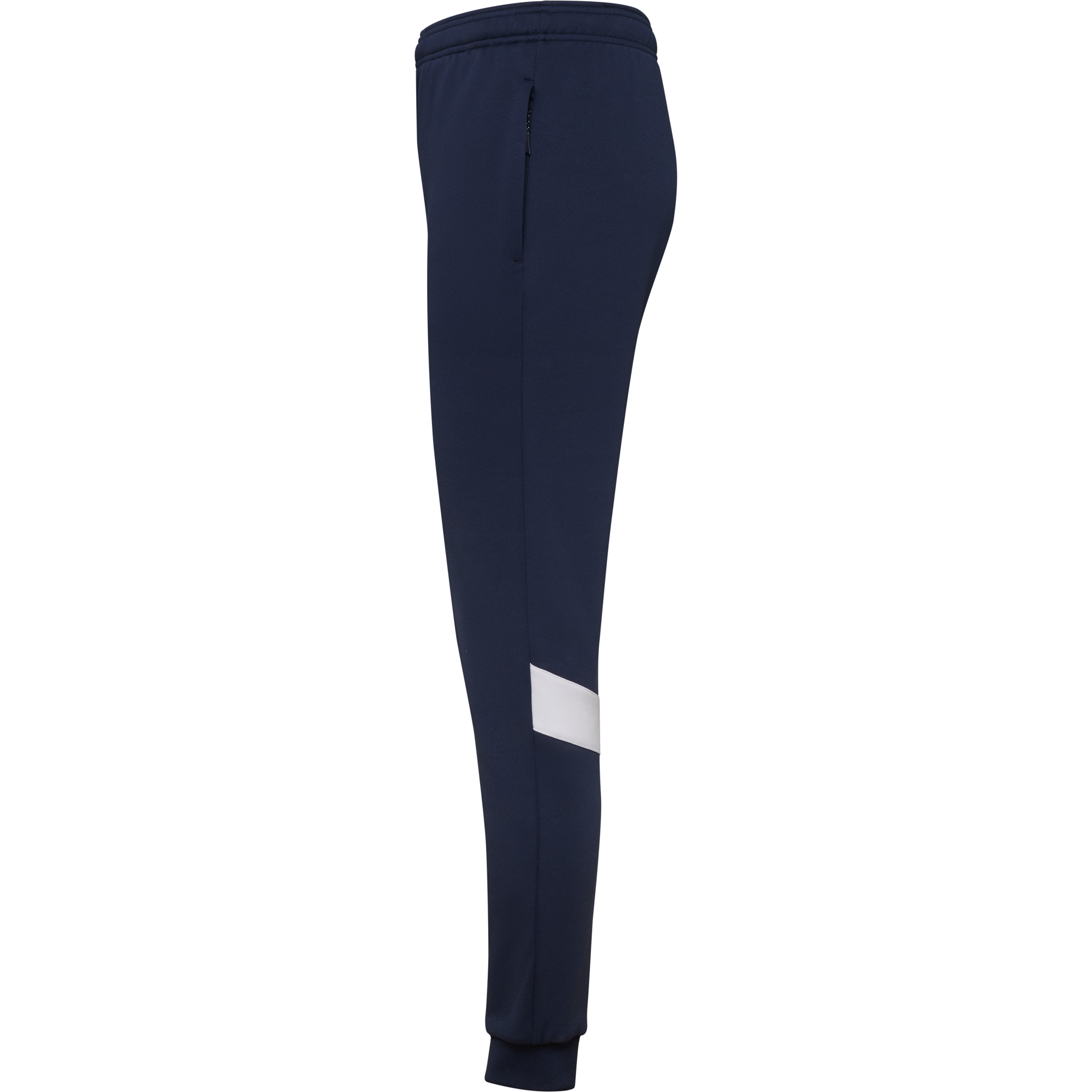 Pantalón largo de deporte con cinturilla elástica y cordón ajustable. Bolsillos laterales con cremallera. Bandas a contraste Blanco. Bajos con puño rib 1×1. Combinable con chaqueta LEROS.