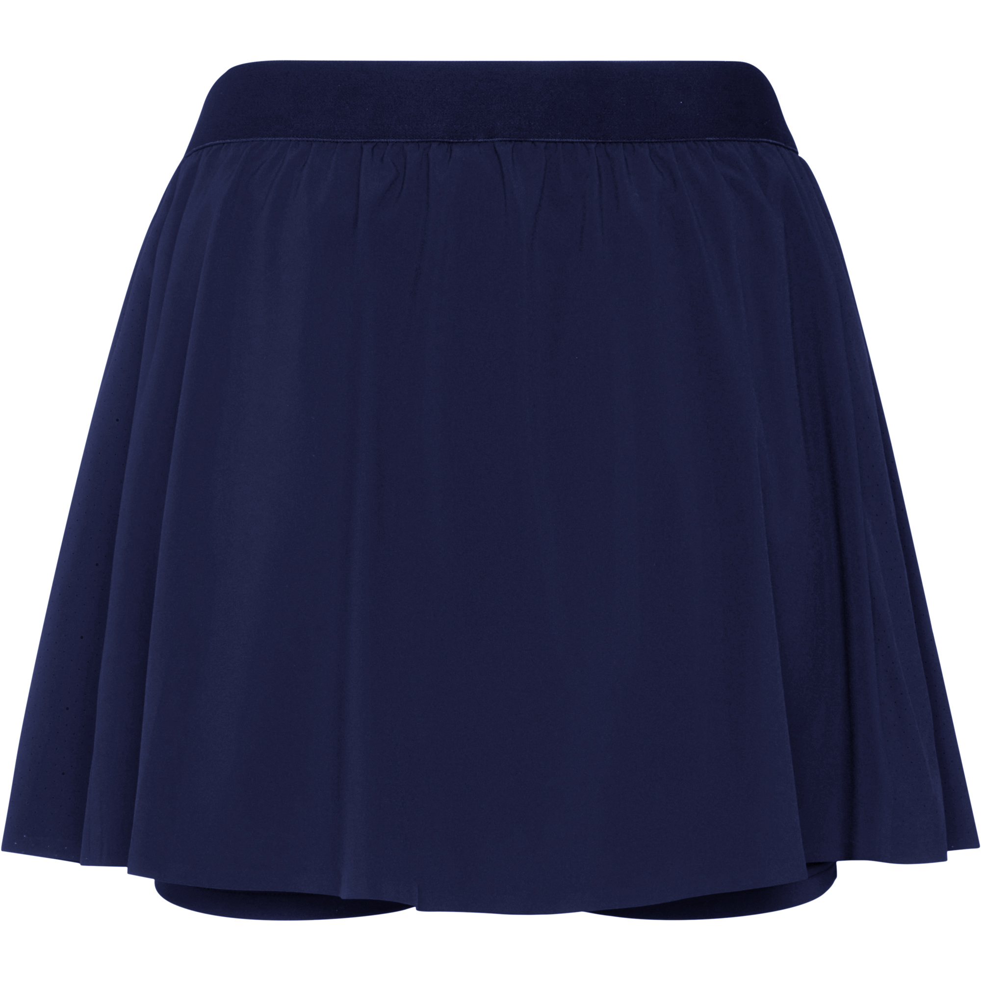 Falda técnica para mujer ligera y elástica realizada en poliéster reciclado. Cinturilla elástica con cordones y banda elástica en parte trasera. Malla corta interior con bolsillo en pierna izquierda. Bajo con dobladillo termosellado. Combinado con tejido microperforado para mejorar la transpiración. Idónea falda para practicar deportes de raqueta.