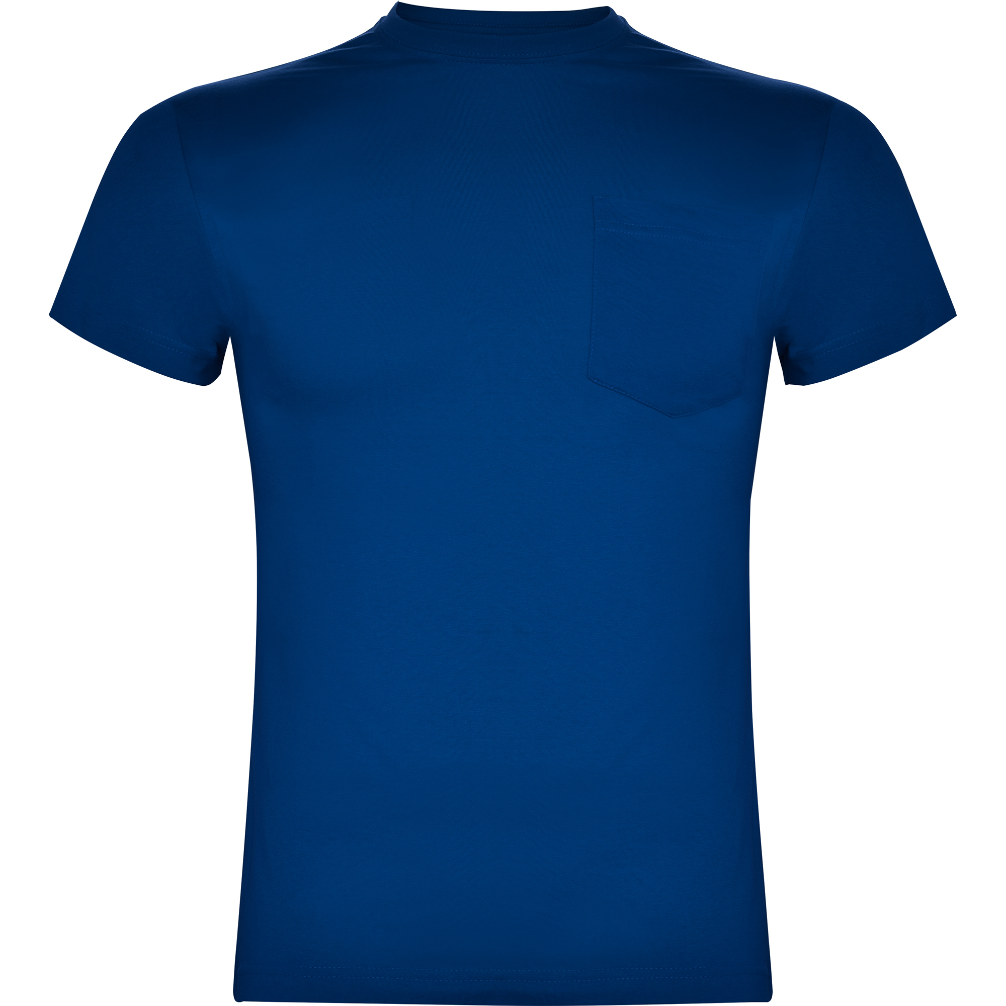 Camiseta de manga corta y cuello redondo de 4 capas. Cubrecosturas reforzado en cuello y hombros, costuras laterales y bolsillo frontal.