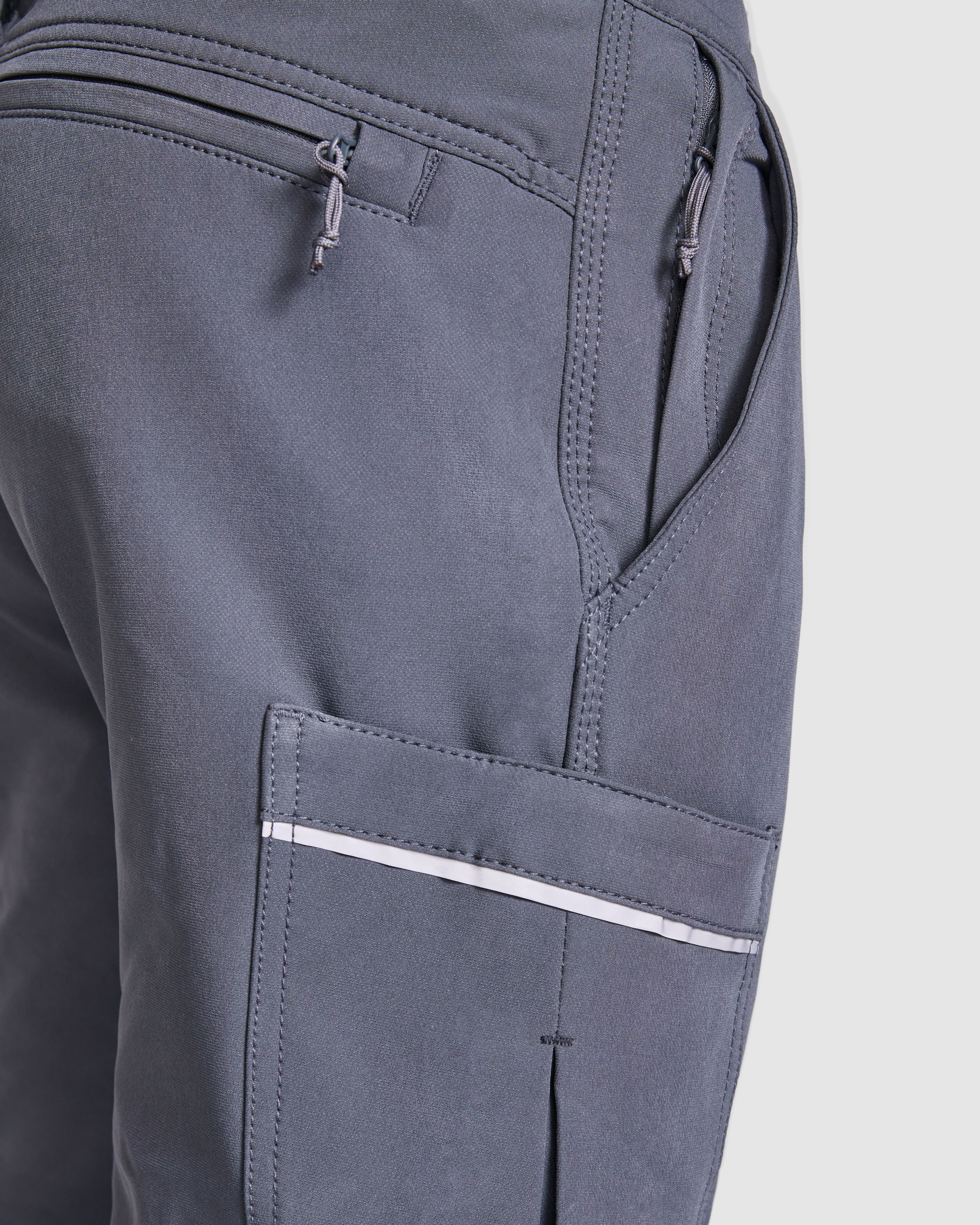 · Bolsillo cargo en lateral izquierdo con tapeta, cinta reflectante y cierre de velcro.