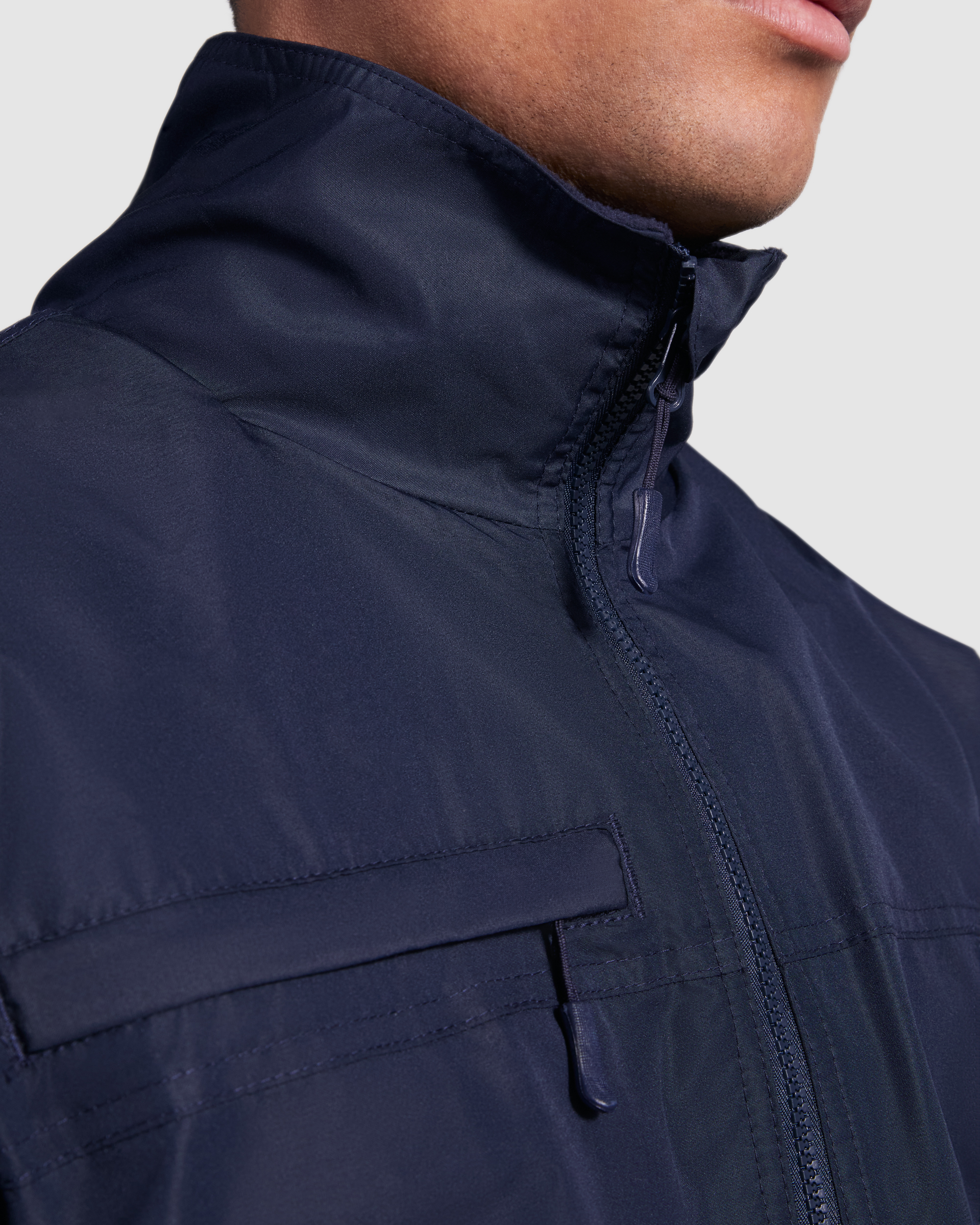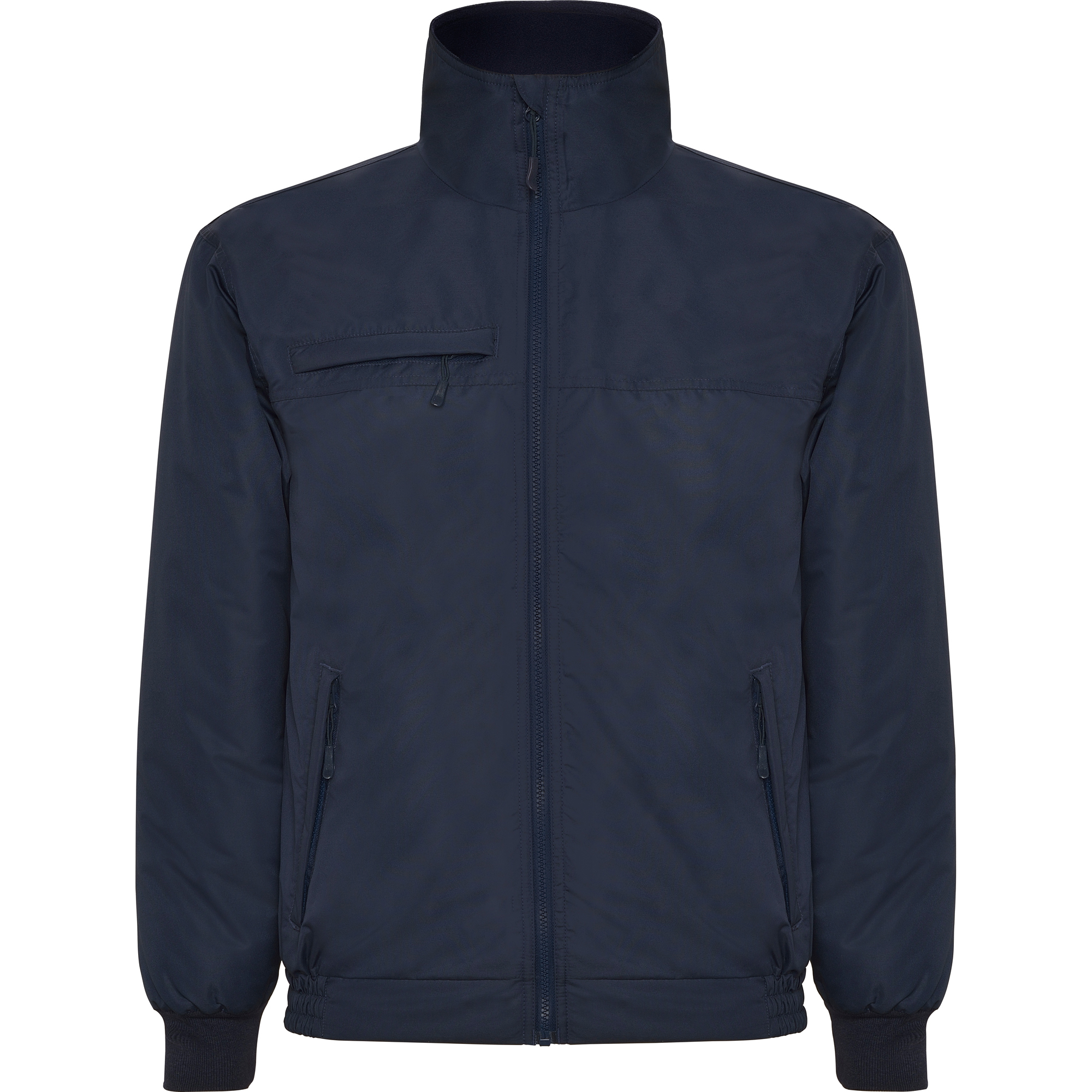 · Cremallera central inyectada al tono con protector de barbilla y tirador. Un bolsillo en el pecho y dos laterales con cremallera y solapa. Puños ajustables en canalé 1×1. Acceso interior para marcaje.